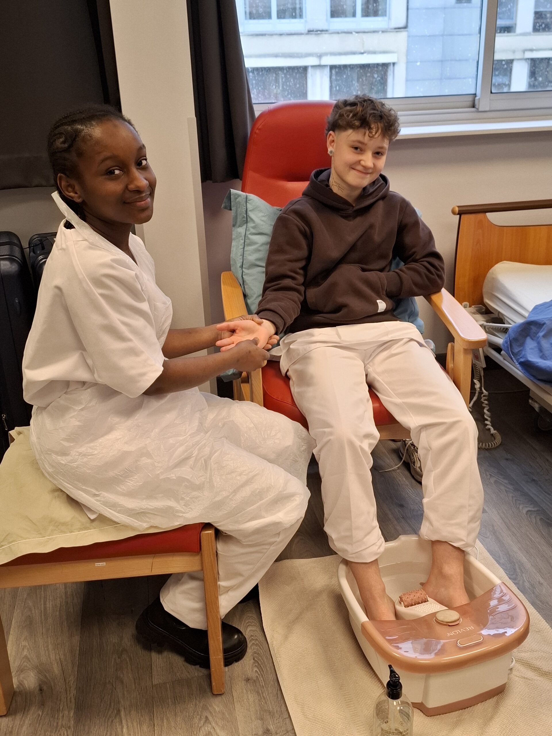 Dans cette approche globale du soin, des soins de confort peuvent également être proposés, tels que le massage des mains, favorisant détente, apaisement et relation de confiance.